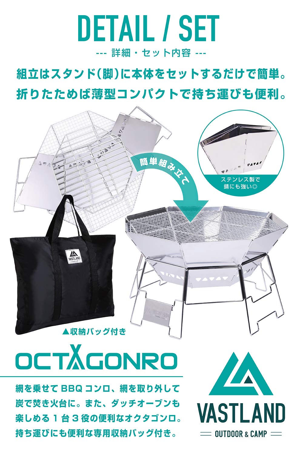 VASTLAND(ヴァストランド) バーベキューコンロ 焚火台 ダッチオーブン 1台3役 2~4人用 オクタゴンロ 収納バッグ付き
